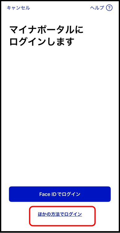 ※マイナポータルにログインする際は、「Face IDでログイン」ではなく、「他の方法でログイン」からログインしてください。